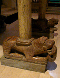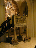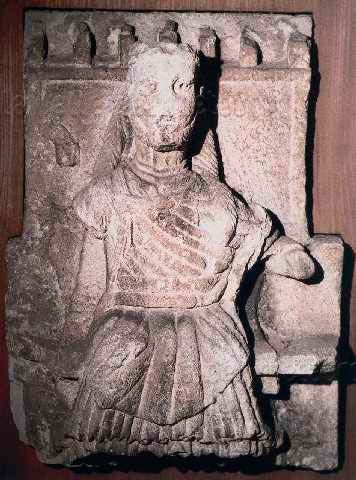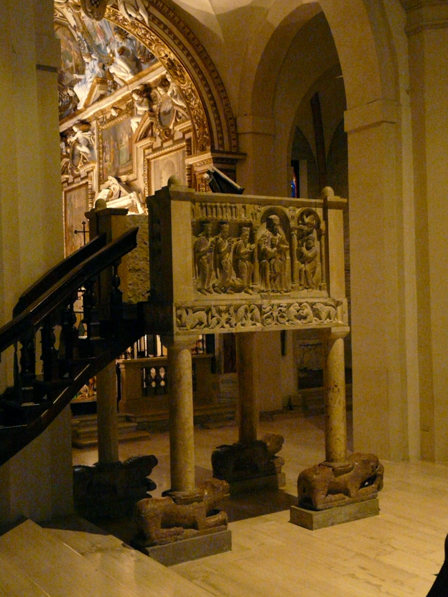 Duomo, arredo del presbiterio. Altorilievo medioevale rappresentante un nobile personaggio in trono (fronte)