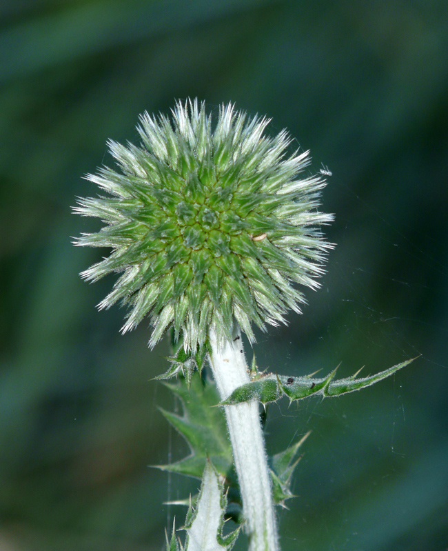 Echinops sphaerocephalus con fiori non schiusi, Orto botanico di Casa Archilei a Fano, giugno 2009