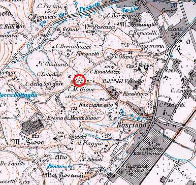 Edicola a M. Giove (Fano). Carta top. Reg. Marche 1:25.000 110 III (autorizz. Ufficio Cartografia e Inform. Territoriali Reg. Marche del 13-3-1999 e aut. IGM n. 4877 del 2-11-1998)