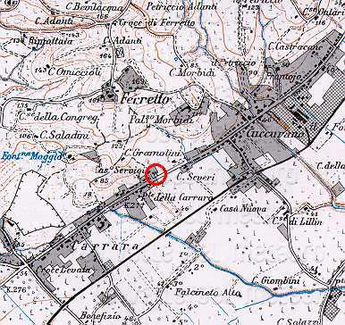Edicola a Ferretto (Fano). Carta top. Reg. Marche 1:25.000 110 III (autorizz. Ufficio Cartografia e Inform. Territoriali Reg. Marche del 13-3-1999 e aut. IGM n. 4877 del 2-11-1998)