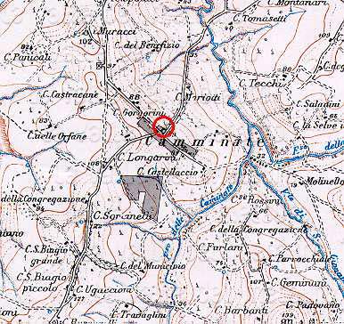 Edicola a Caminate (Fano). Carta top. Reg. Marche 1:25.000 110 III (autorizz. Ufficio Cartografia e Inform. Territoriali Reg. Marche del 13-3-1999 e aut. IGM n. 4877 del 2-11-1998)