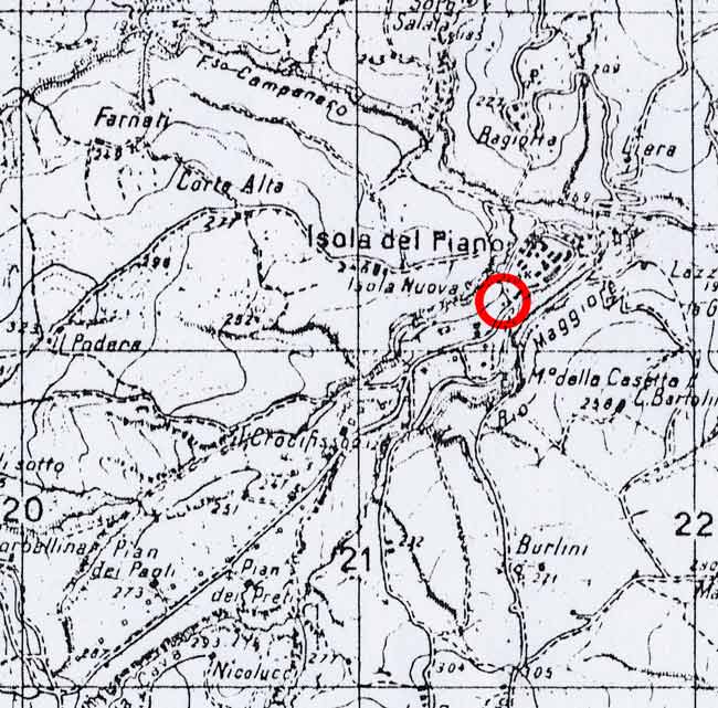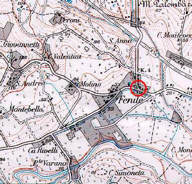 Edicola a Fenile (Fano). Carta top. Reg. Marche 1:25.000 110 IV (autorizz. Ufficio Cartografia e Inform. Territoriali Reg. Marche del 13-3-1999 e aut. IGM n. 4877 del 2-11-1998)