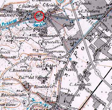 Edicola a Centinarola (Fano). Carta top. Reg.Marche 1:25.000 110 III (autorizz. Ufficio Cartografia e Inform. Territoriali Reg. Marche del 13-3-1999 e aut. IGM n. 4877 del 2-11-1998)