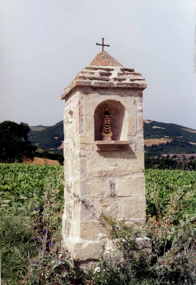 Edicola a Cassìa, alto Candigliano (Sant'Angelo in Vado), adobbata per la manifestazione del 22 agosto (da: www.ilnuovoamico.it)