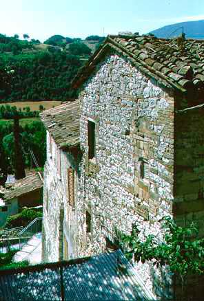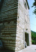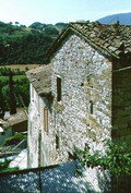 Edificio annesso alla Chiesa di S. Gervasio nel nucleo abitato omonimo, pendici di N.E. del M. Paganuccio (Fossombrone), agosto 2012