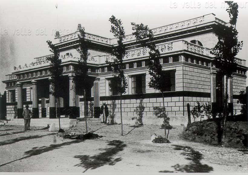 Edificio dei "Bagni caldi" al Lido di Fano, primi del 1900. Era situato in via Carducci a Fano; oggi non più esistente (cartolina d'epoca)