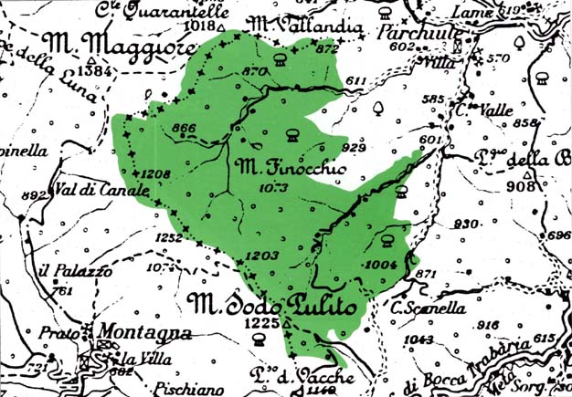 Emergenza botanico-vegetazionale BB dei Monti Nerone e Petrano, carta 1:100.000 (da BALLELLI e PEDROTTI 1996)
