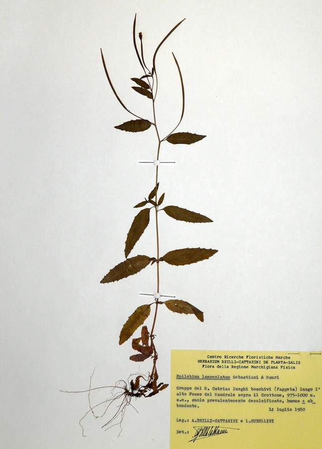 Epilobium lanceolatum (Erbario Centro Ricerche Floristiche Marche a Pesaro), Gruppo del M. Catria, nella faggeta, luglio 1980