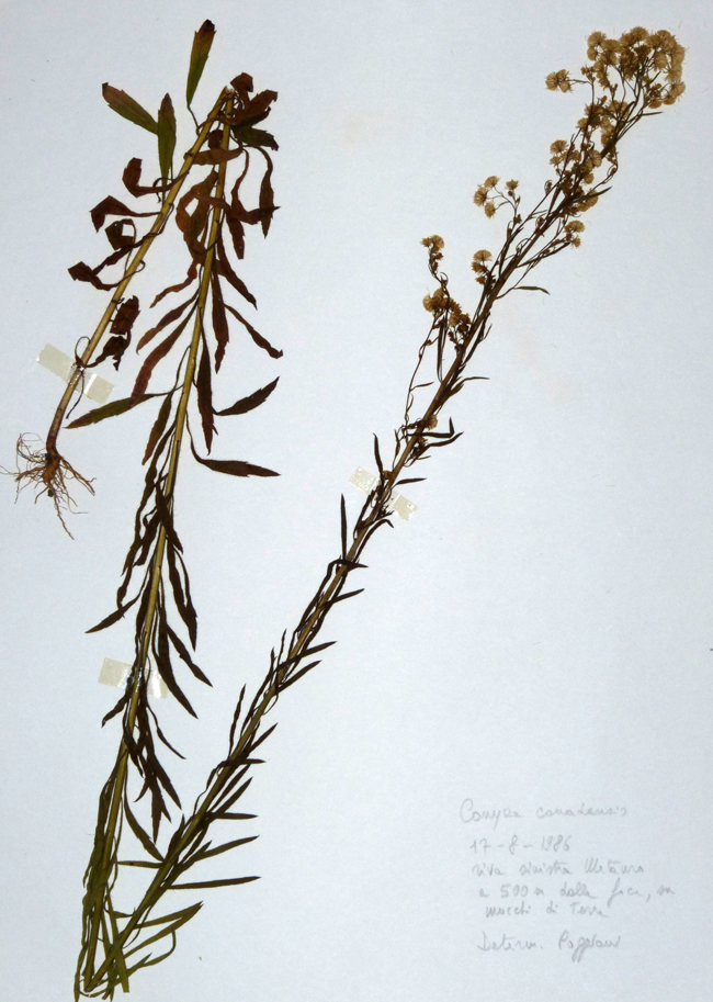 Erigeron sumatrensis (Erbario L. Poggiani), Fano, agosto 1986 Foto di:Poggiani Luciano