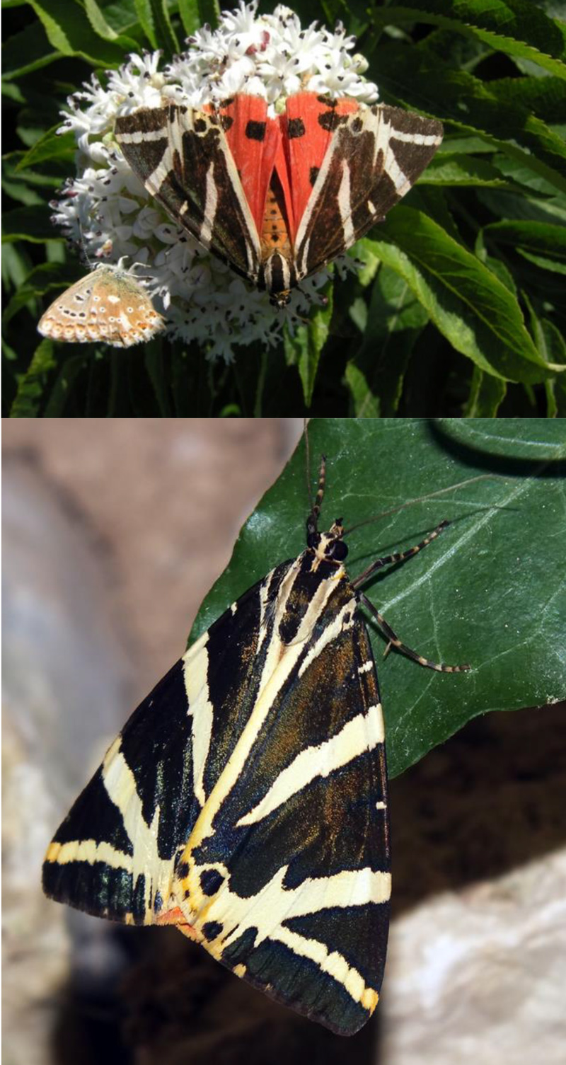Euplagia quadripunctaria, M. Paganuccio (Monti del Furlo), agosto 2012 (foto V. Dionisi); in basso: E. quadripunctaria, Monte Catria, agosto 2006 (foto L. Gubellini)