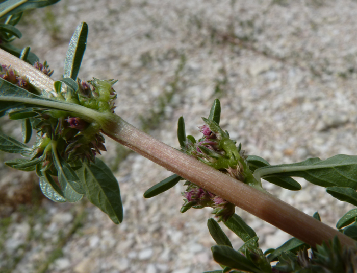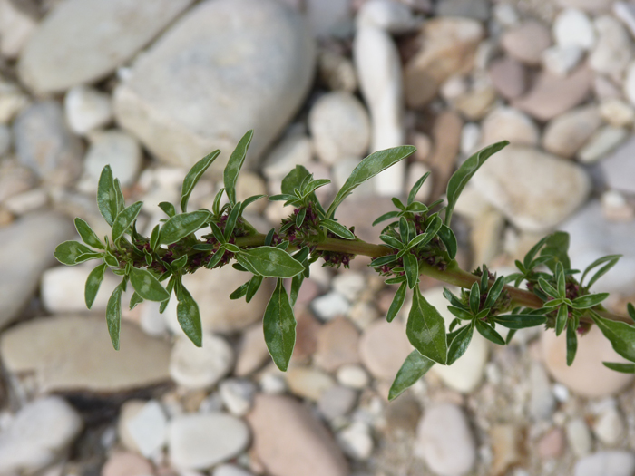 Amaranthus tuberculatus, individuo femminile, alveo ghiaioso del F. Metauro a Sant'Ippolito, ottobre 2010