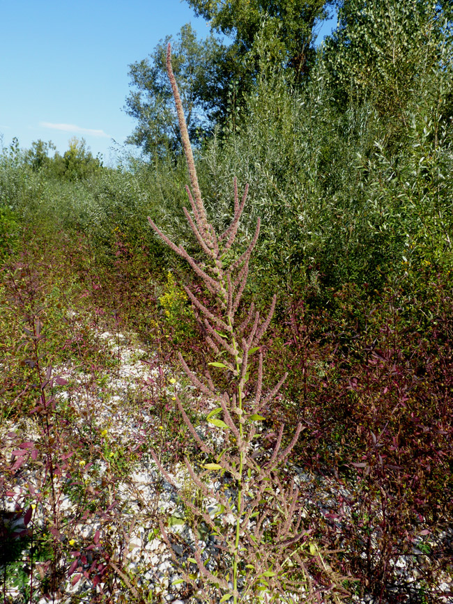 Amaranthus tuberculatus, individuo maschile, alveo ghiaioso del F. Metauro a Fano, settembre 2011