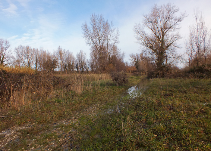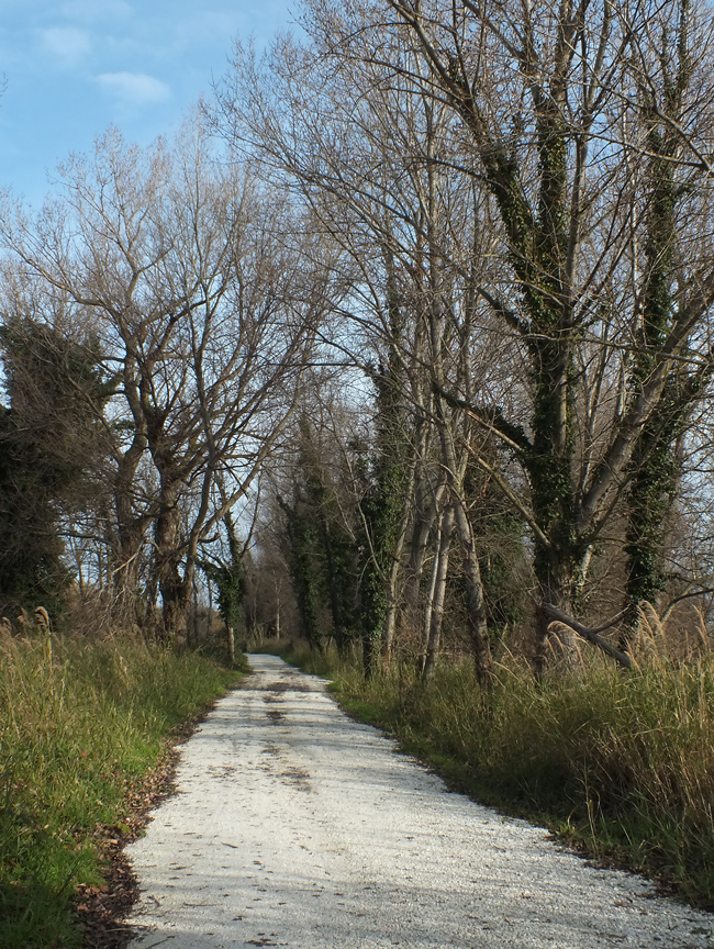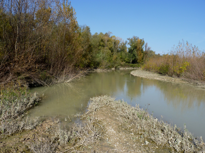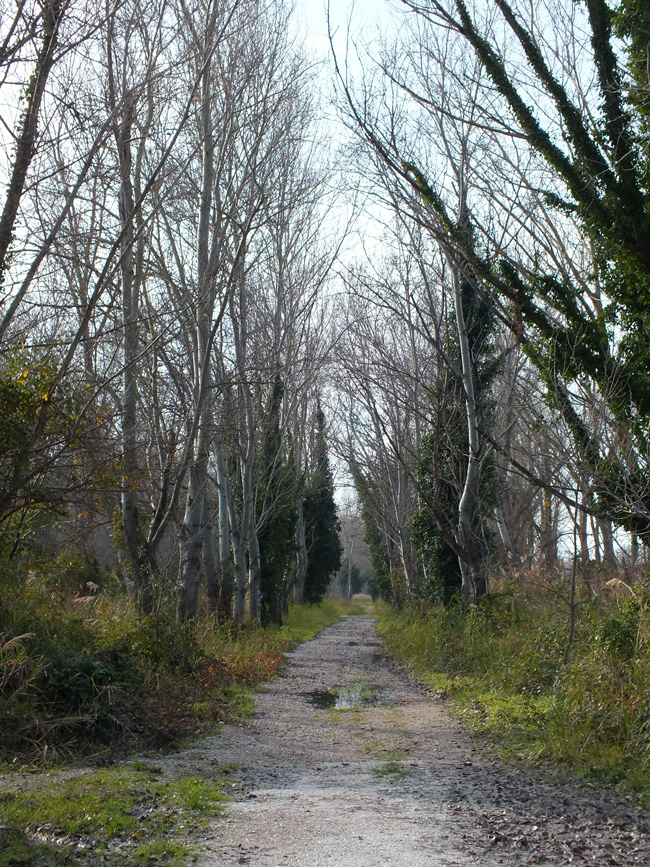 F. Metauro a 1 km dalla foce, gennaio 2013. I due filari di pioppi bianchi sono stati piantati circa 40 anni fa