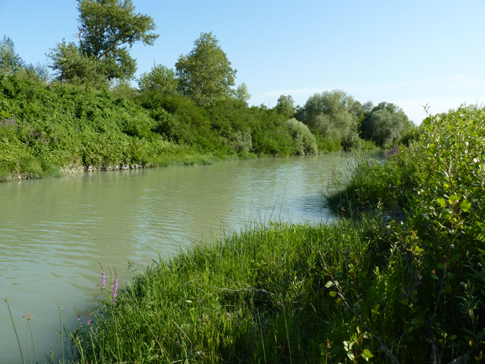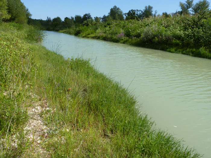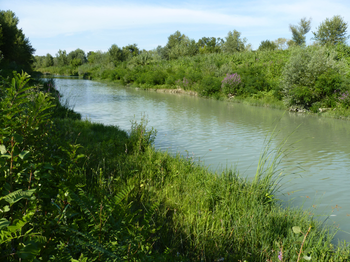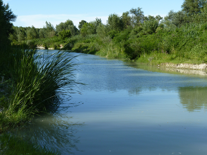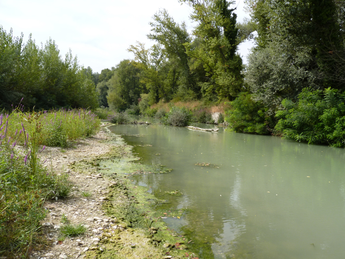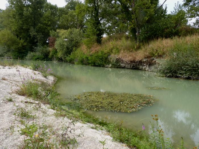 F. Metauro a 2,5 km dalla foce (Fano), settembre 2011. In acqua è visibile Potamogeton nodosus