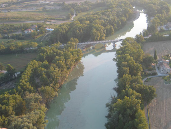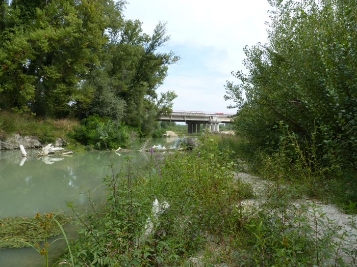 F. Metauro a 2,5 km dalla foce (Fano), settembre 2011. Vista verso valle, col ponte autostradale