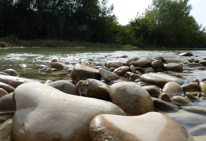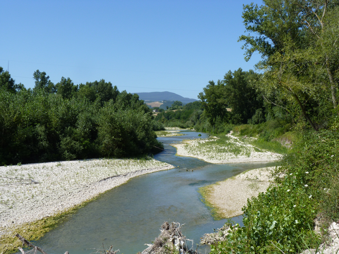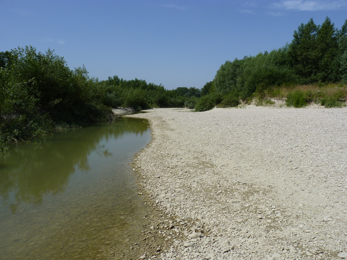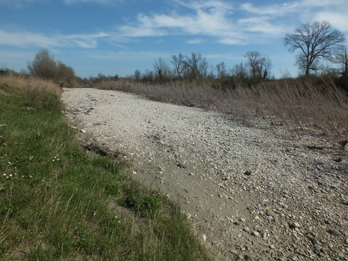F. Metauro a 4 km dalla foce, 4 aprile 2013. L'alveo ghiaioso è del tutto privo di vegetazione erbacea