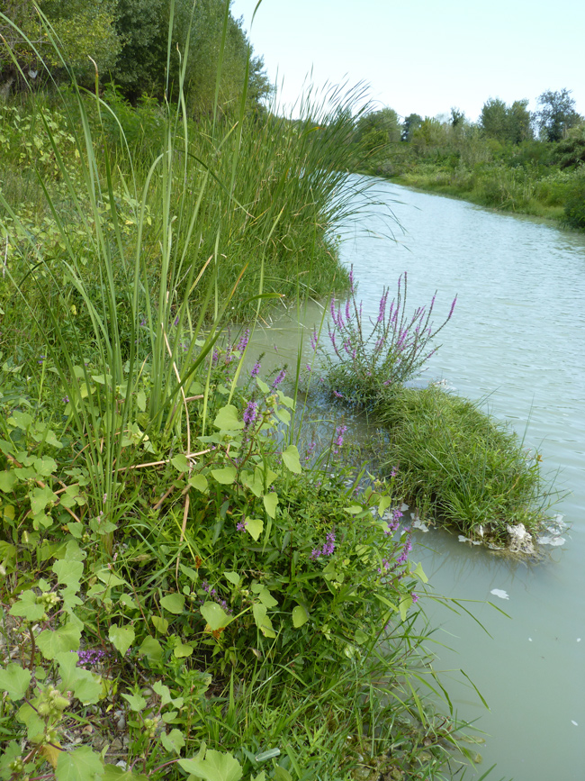 F. Metauro a 4 km dalla foce, settembre 2010. Si vedono Xanthium orientale italicum, Typha domingensis e Lythrum salicaria