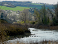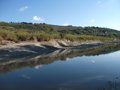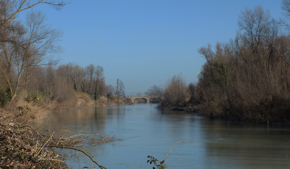 F. Metauro a 5,5 Km dalla foce, marzo 2008. Sullo sfondo la collina scoscesa con arbusteto di Prugnolo