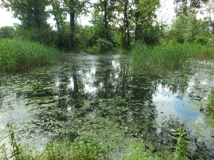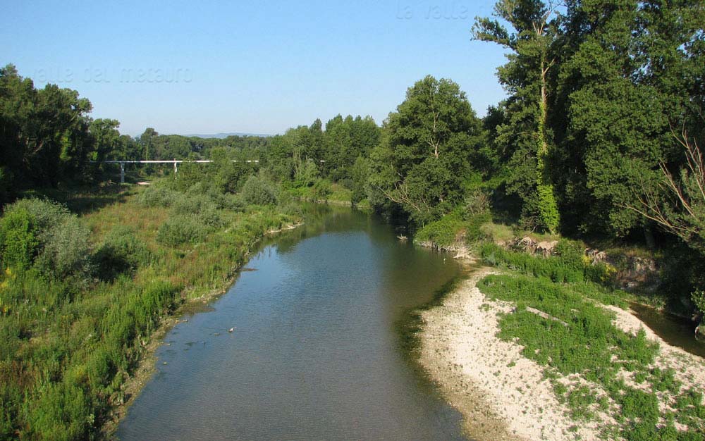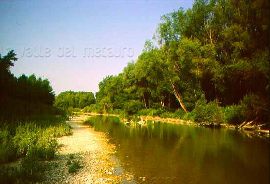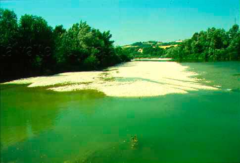 F. Metauro e sulla destra le vecchie vasche dell'ex Zuccherificio di Fano e il Lago Vicini, luglio 2007