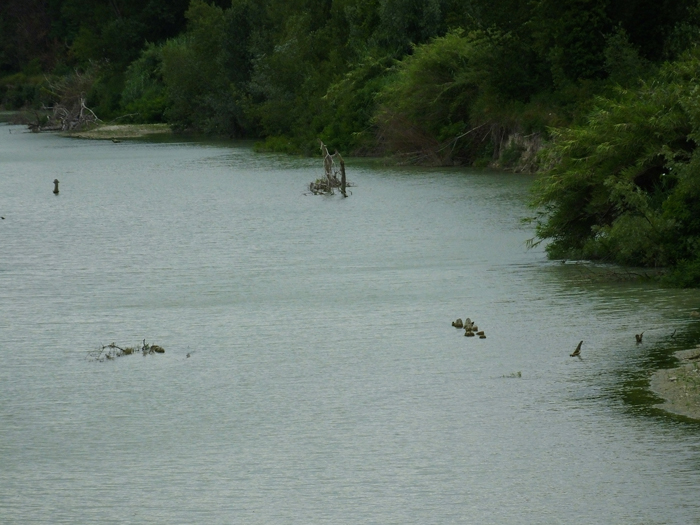 F. Metauro dal Ponte della SS. Adriatica a Fano, verso monte, mozziconi di pali, luglio 2014