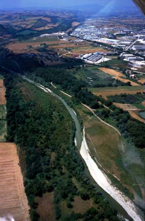 F. Metauro con più lontano lo Stagno Urbani e la zona industriale di Bellocchi (Fano), 2000