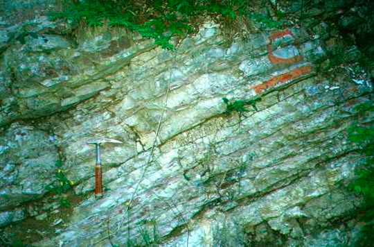 Fig. 10 - Formazione delle Marne a Fucoidi, pieghe kink e chevron - Membro marnoso verde
