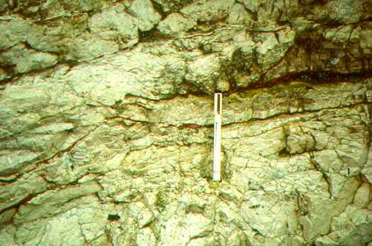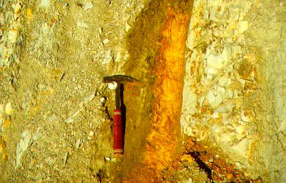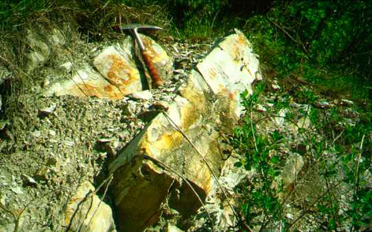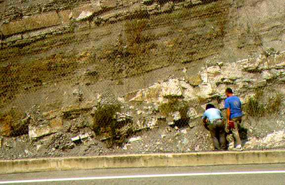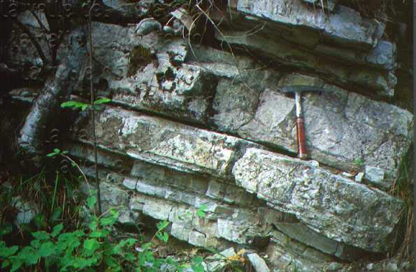 Fig. 1 - Limite tra il Calcare a Saccocoma ed Aptici e la soprastante Maiolica