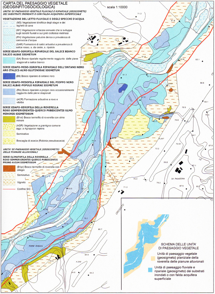 Fig. 10 - Estratto della carta del paesaggio vegetale (geosinfitosociologica) del SIC (IT5310015) e ZPS (IT 5310028) di Tavernelle sul Metauro (Biondi et al., 2005)