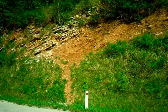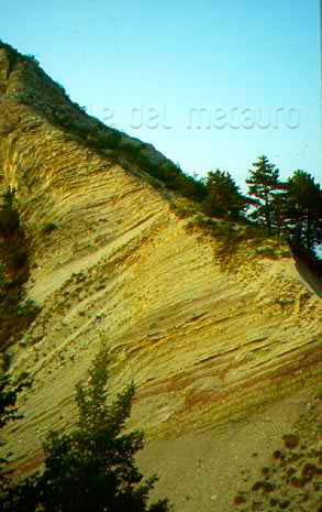 Fig. 1 - La parte superiore dello Schlier, bivio per Sant'Angelo in Vado lungo la strada Piobbico-Urbania