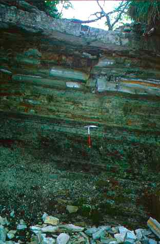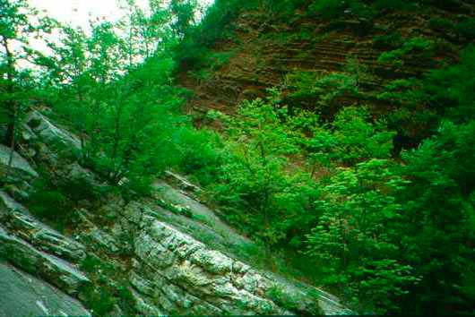 Fig. 13 - La parte alta delle Marne a Fucoidi lungo il F. Candigliano a Piobbico