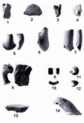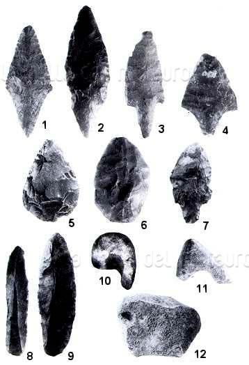Fig. 7 - Fano: Foce dell'Arzilla, industria litica. Particolari da 1 a 12 (vedi descrizioni nel testo)