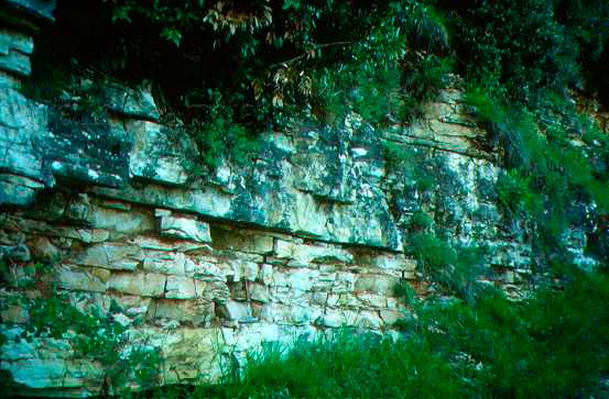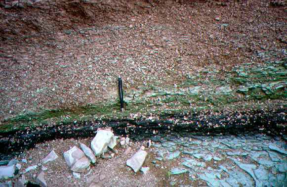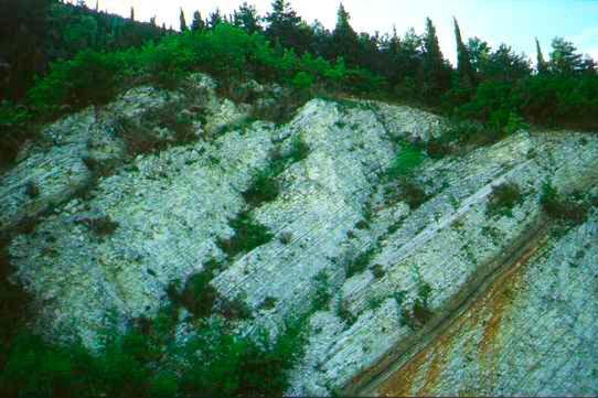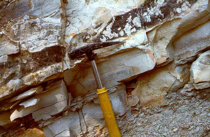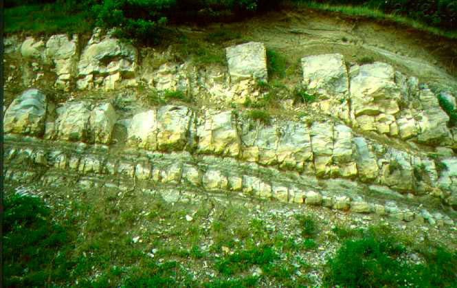 Fig. 5 - Affioramento di Scaglia Bianca con due Livelli Bonarelli, al passaggio con la Scaglia Rossa