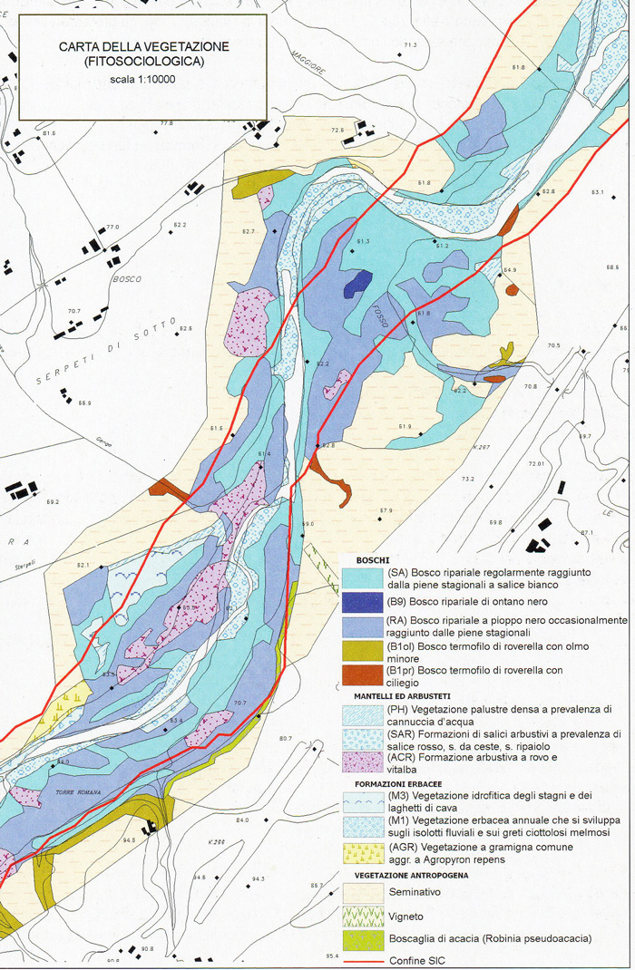 Fig. 8 - Estratto della carta della vegetazione (fitosociologica) del SIC (IT5310015) e ZPS (IT 5310028) di Tavernelle sul Metauro (Biondi et al., 2005)