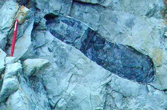 Fig. 5 - Nodulo di selce dell'olistostroma della Scaglia Rossa nella Scaglia Variegata