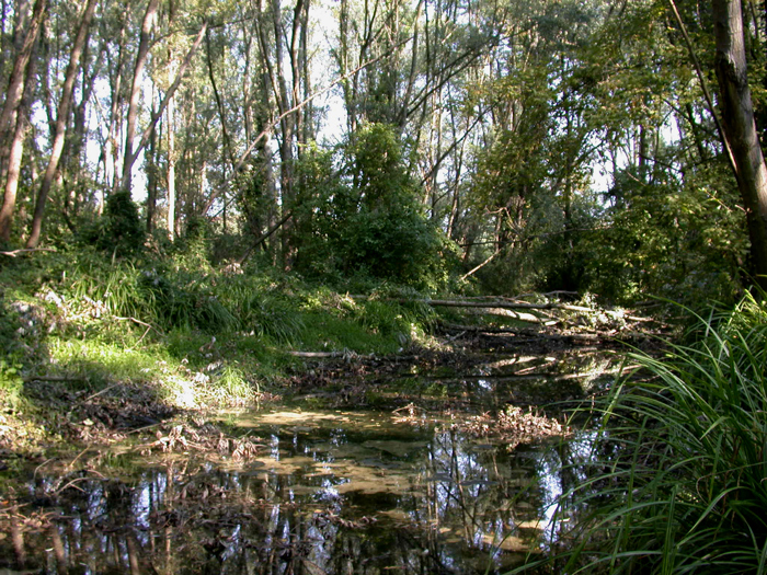 Fig. 7 - Il Rio (in IGM Fosso Le Logge) che si immette nel Metauro all'interno della foresta alluvionale di pioppi e salici, nei pressi del bosco della Torre Romana (Sant'Ippolito)
