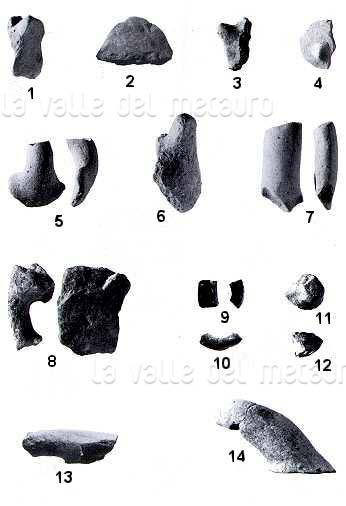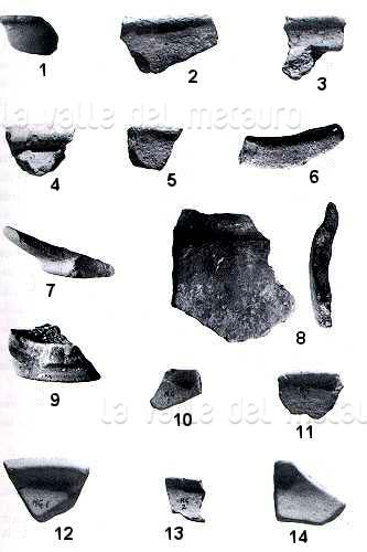 Fig. 7: Monte Giove: reperti ceramici. Particolari da 1 a 14 (vedi descrizioni nel testo)