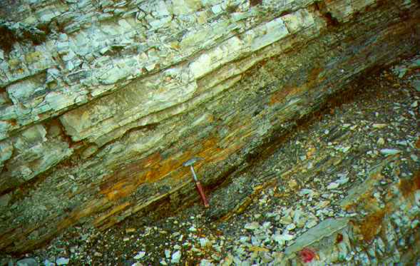 Fig. 6 - La Megatorbidite nella Scaglia Rossa a M. Pietralata (Monti del Furlo)