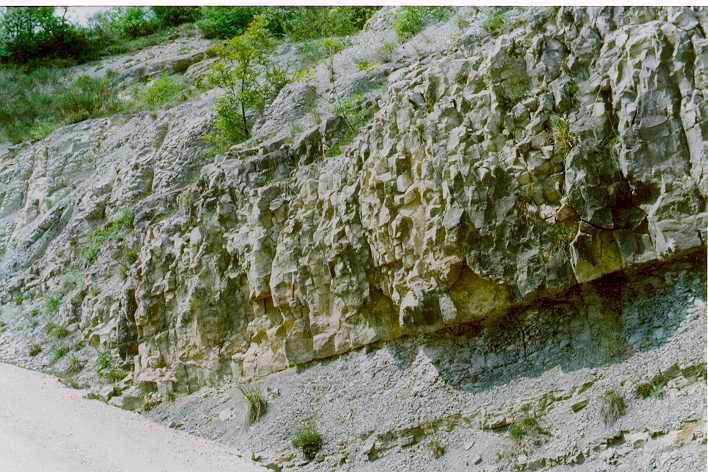 Fig. 6 - Le colombine nella Marnoso-Arenacea, strada tra Pianello di Cagli e Pietralunga