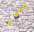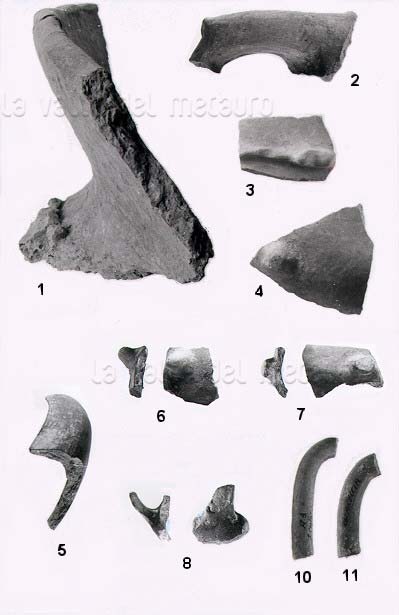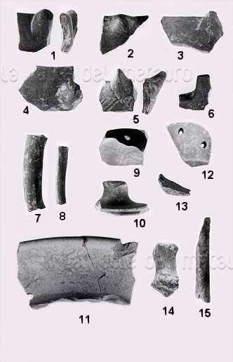 1 - Abitato dell'Età del Ferro; 2 - Tomba in località il Gallo; 3 - Tombe in località Casa dello Spedale; 4 - rinvenimento del Paleolitico inferiore
