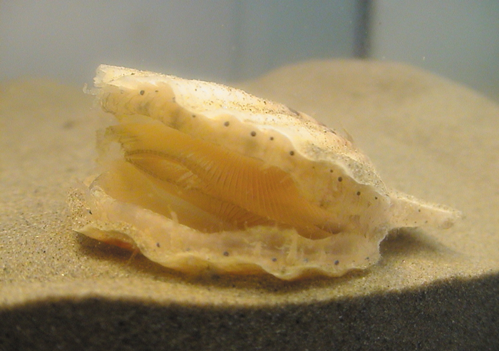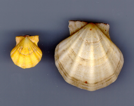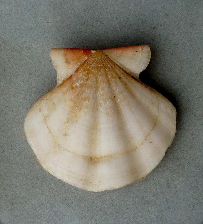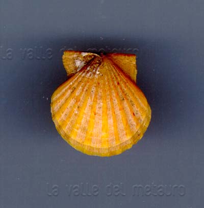 Flexopecten glaber proteus di 51 mm, villaggio della tarda Età del Bronzo a Chiaruccia di Fano