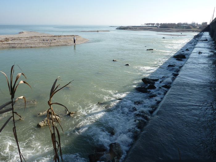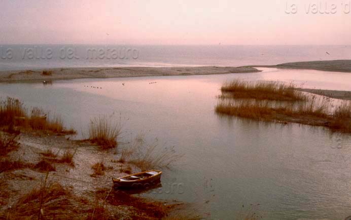Foce del F. Metauro in riva destra, 1975. La rete che si vede è quella di recinzione del locale campeggio