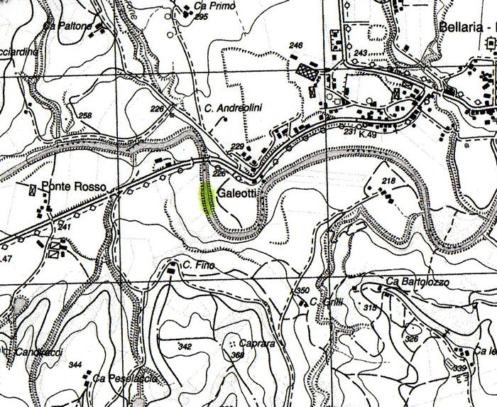 Fiume Candigliano presso Bellaria (Acqualagna e Cagli). Carta IGM 1:25.000, F. 279 sez. II - Urbania (modificata)