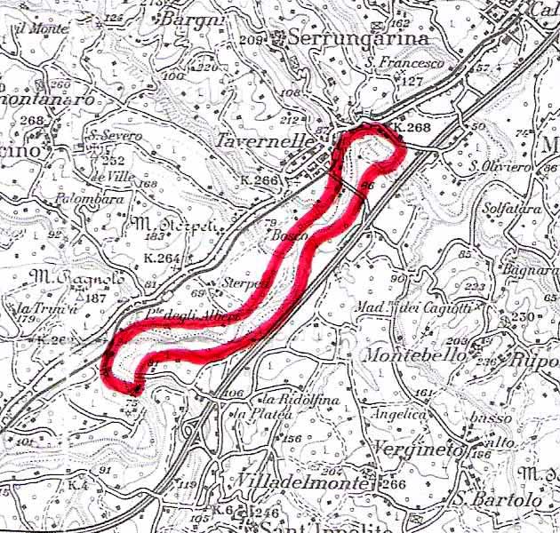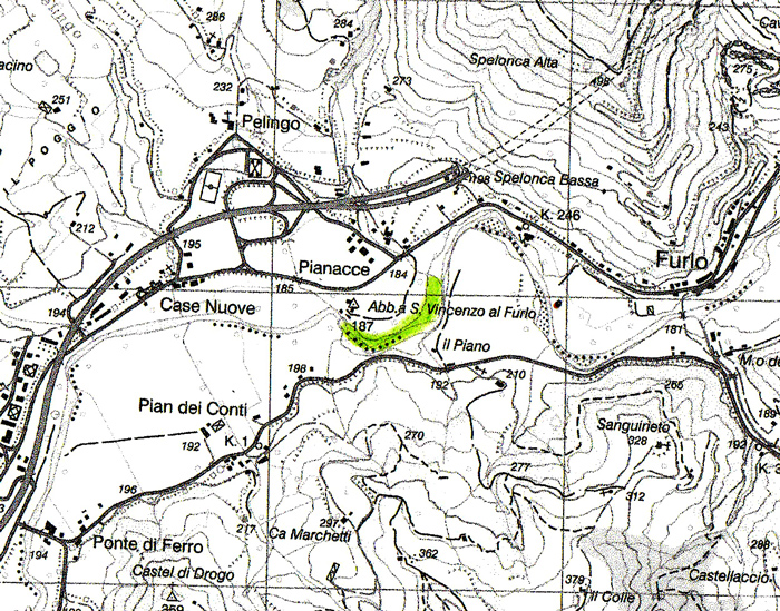 Fiume Candigliano presso S. Vincenzo al Furlo (Acqualagna e Cagli). Carta IGM 1:25.000, F. 280 sez. III - Fossombrone (modificata)