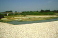 Fiume Metauro. Lo stesso tratto di fiume della foto precedente, come si presenta (in piena) all'arrivo del Corriere piccolo in marzo e non ancora adatto alla nidificazione