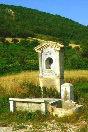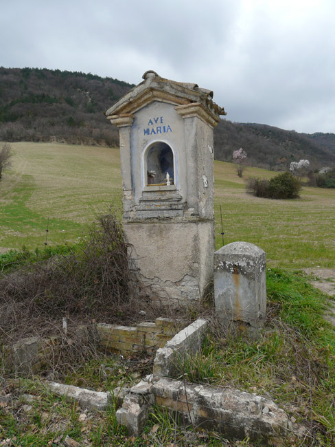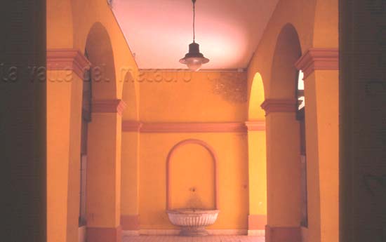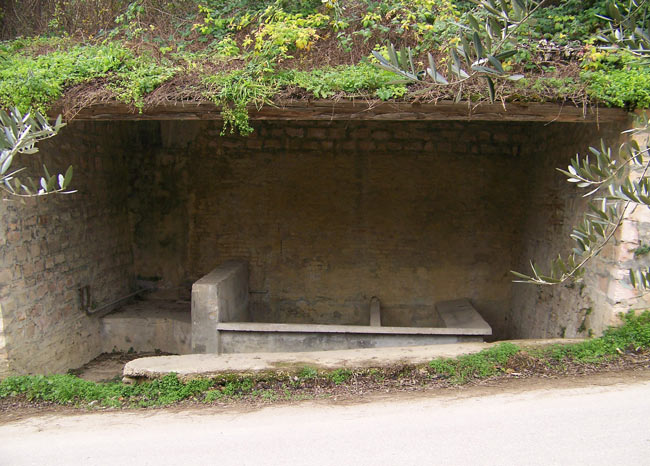 Fontana con lavatoio (demolita) ed edicola a Pagino di Fermignano, febbraio 2008