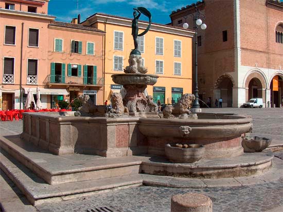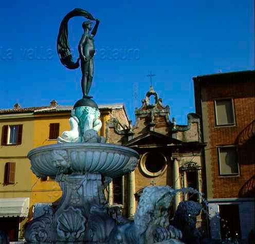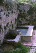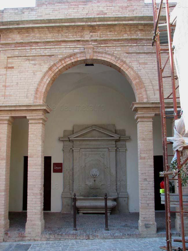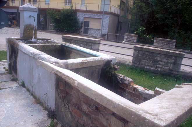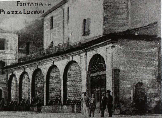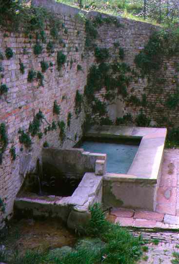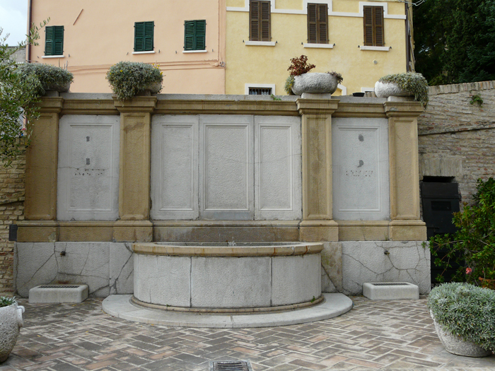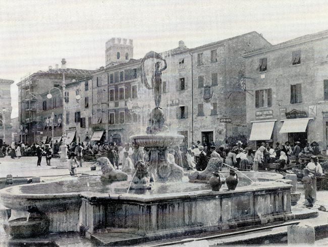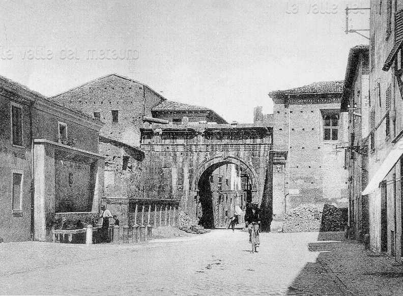 Fontana e lavatoio addossati al Mulino di Porta Maggiore e alla Porta d'Augusto a Fano (foto d'epoca)