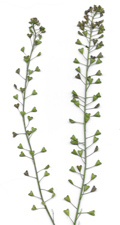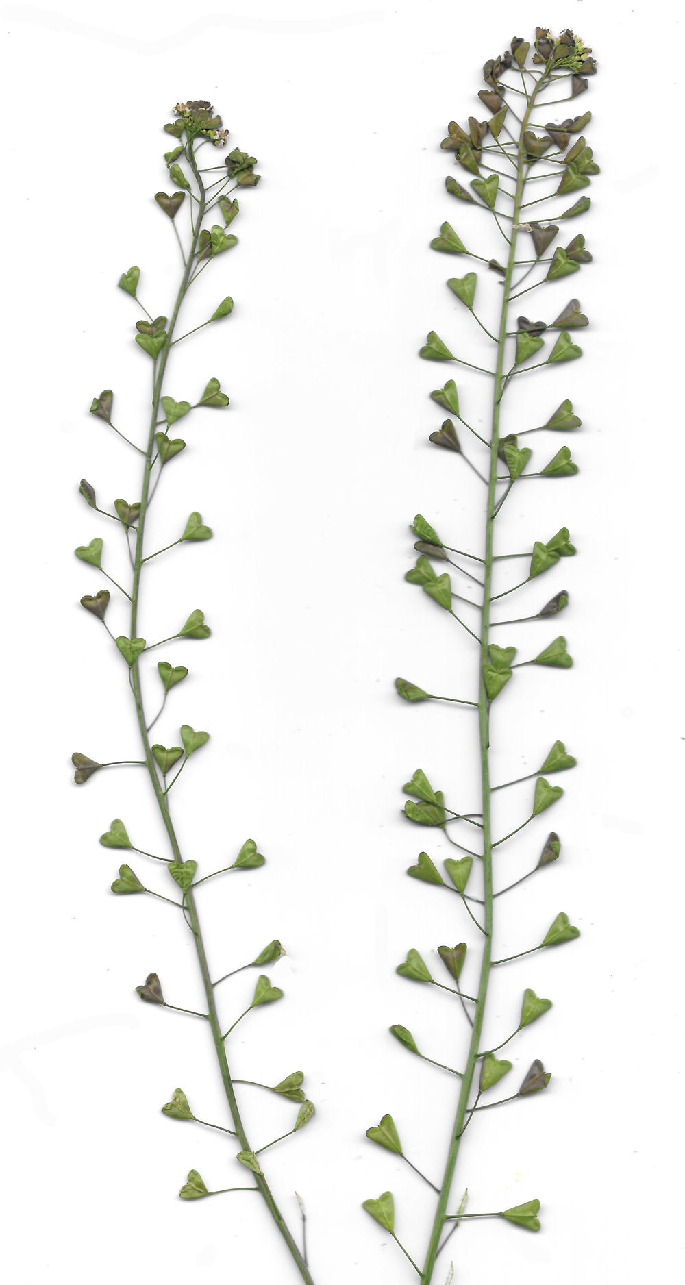 Frutti di Capsella con margini laterali diritti, carattere proprio di Capsella bursa-pastoris, periferia di Fano, aprile 2025