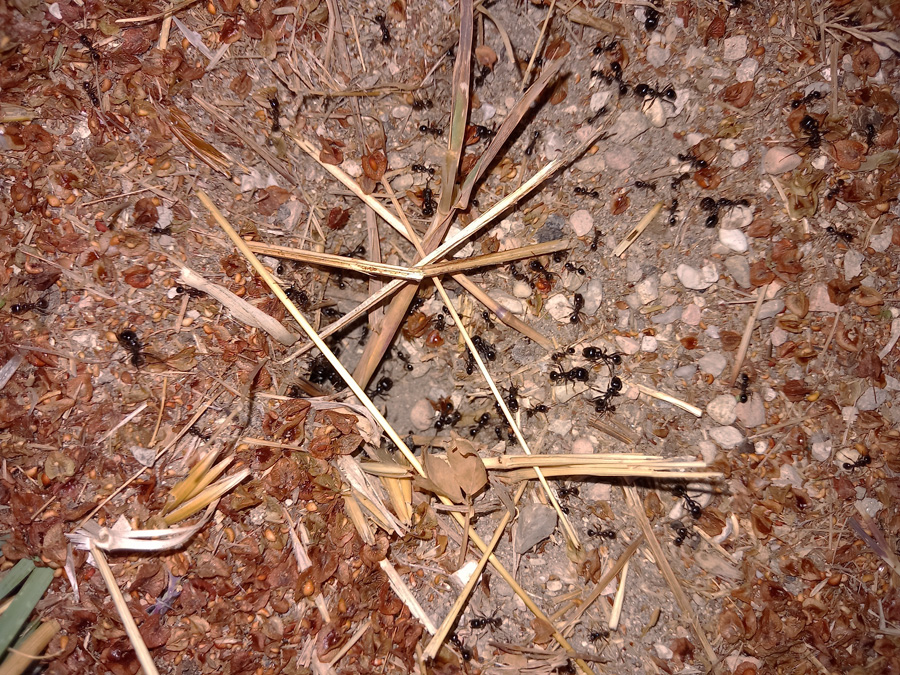 Frutti di Rumex crispus raccolti dalle formiche e prima di essere fatti entrare nel formicaio, periferia di Fano, luglio 2025
