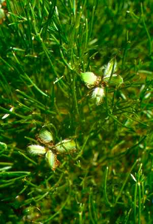 Frutticini di Zannichellia cfr. palustris: 1 e 2 - Lago Vicini lungo il Metauro a 1 km dalla foce il 12 giugno 2011, in foto 1 il rapporto in uno è di 0,5 e nell’altro di 0,7; in foto 2 è di 0,4; 3 - F. Metauro in Comune di Fano il 12 luglio 2011, il rapporto è di 0,6