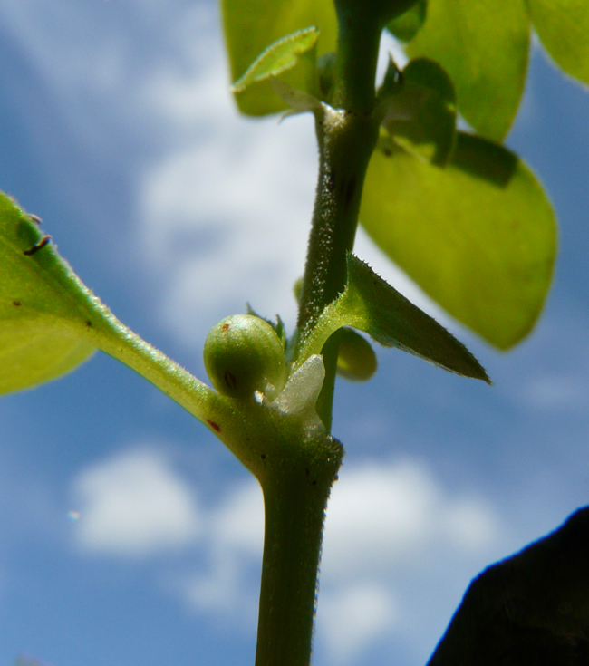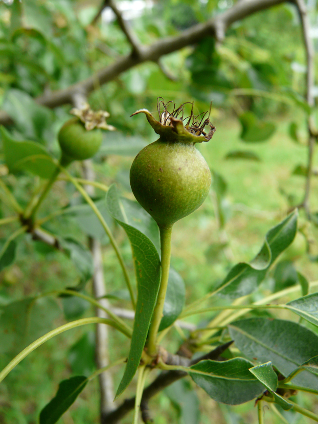 Frutto immaturo di Pyrus communis pyraster, Orto botanico di Casa Archilei a Fano, maggio 2009